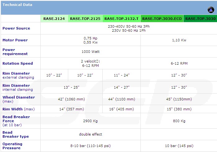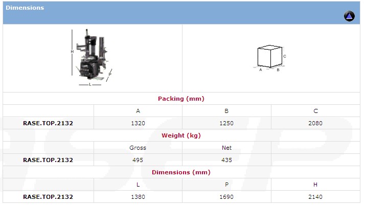 RASE.TOP.2132 encloses the simplicity and practicality of traditional tire changers with practicality of use on Run-Flat tires of new machine with Leverless, with reasonable cost.