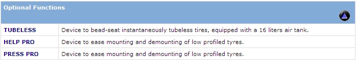 Device PRESS / HELP TOP to ease mounting and demounting of low profile tires, with functions bead double device and bead raises with automatic positioning.